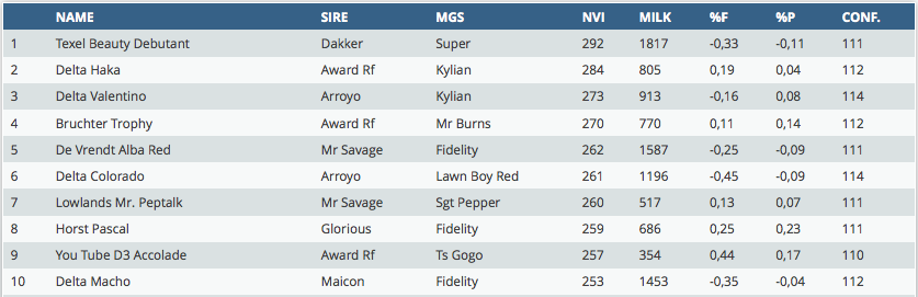 Click here for the Top 50 NVI Genomic Young Sire R&W