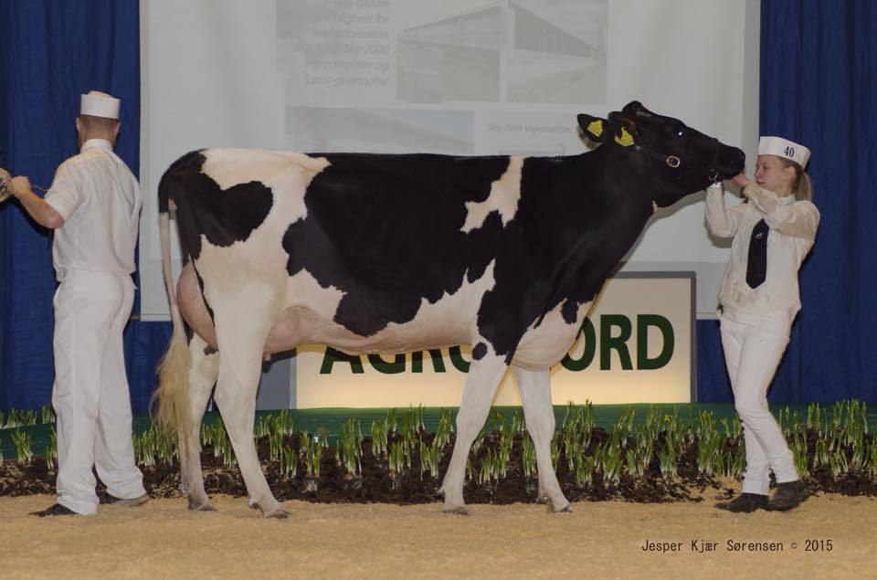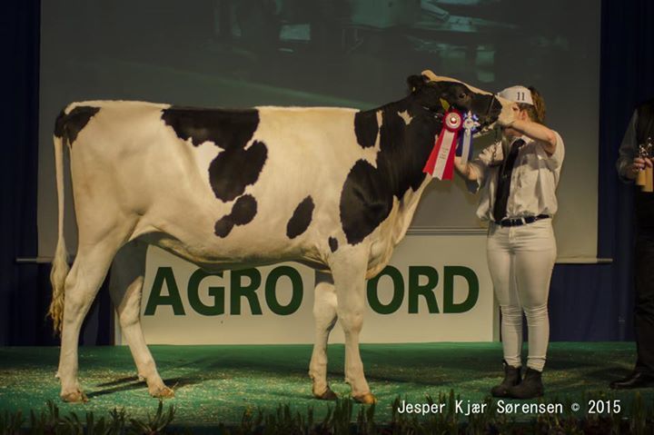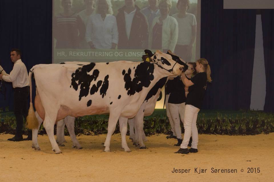 The Mars Yorick daughter Dueholm Yorick Ina has won the Junior Championship at the Agro Nord Show 2015, judged by Paul Hannan which complemted her development, great feeet & legs and super udder promis. Ann Witte won the Championship in the Showmanships class.