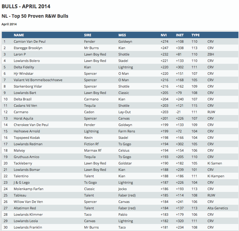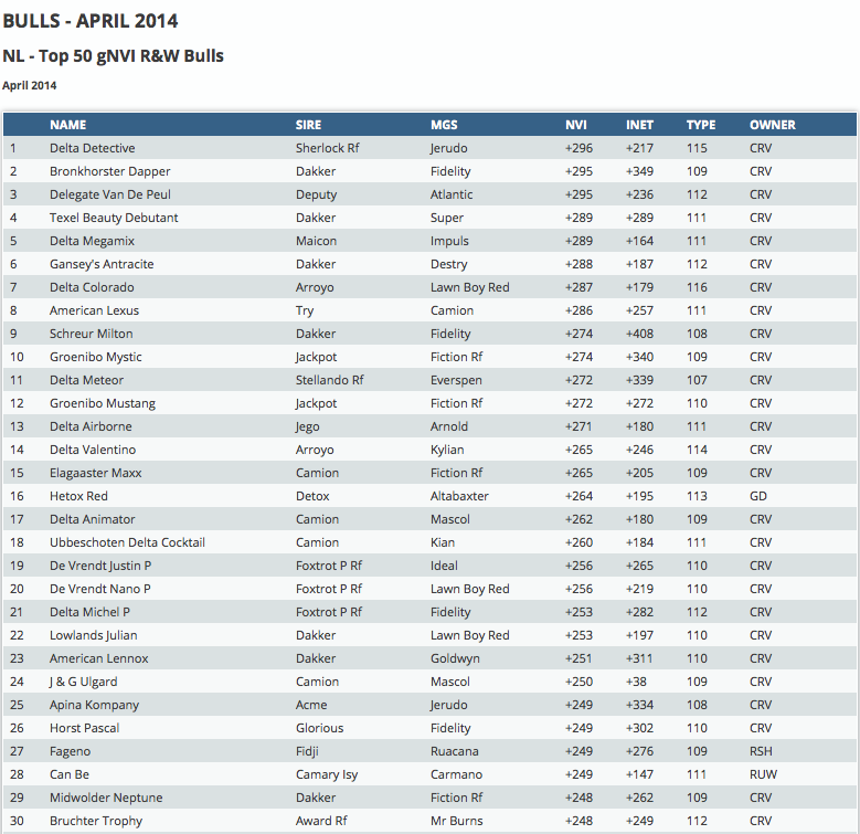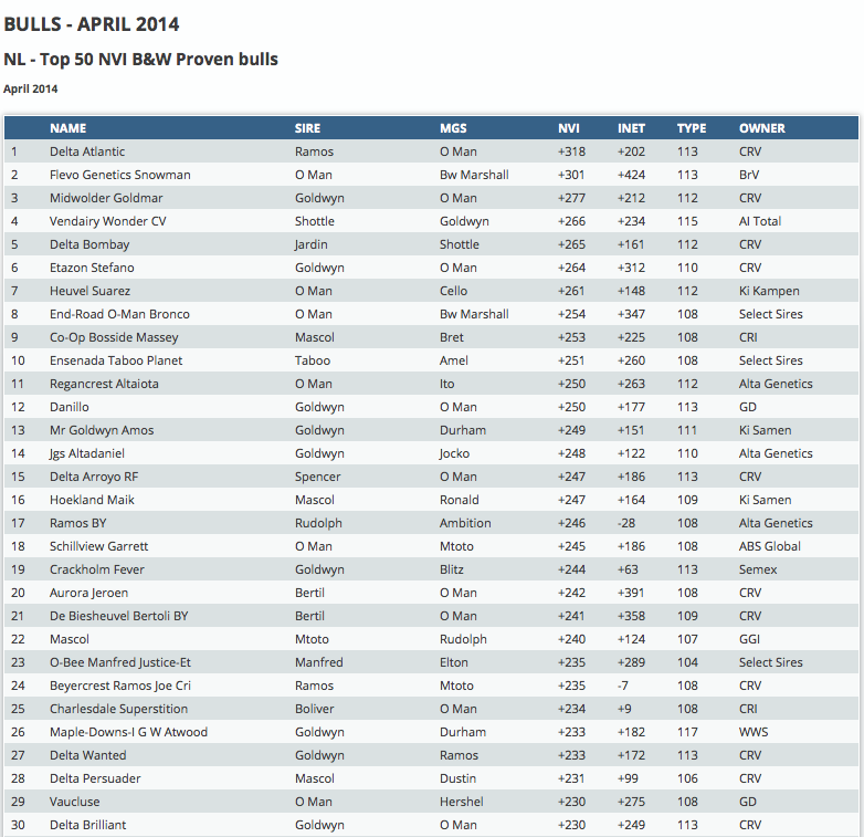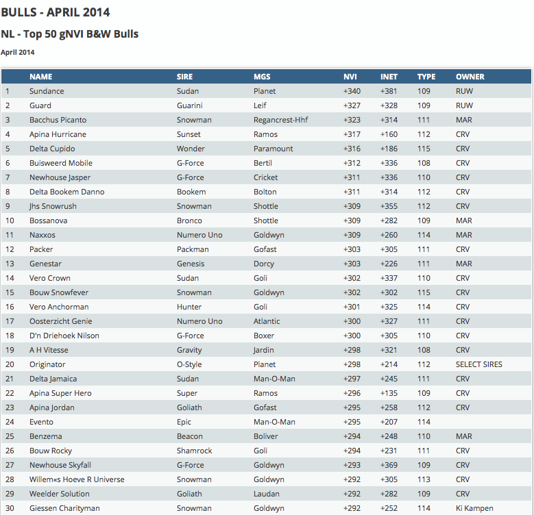 Click further for the Dutch NVI bull indexes.