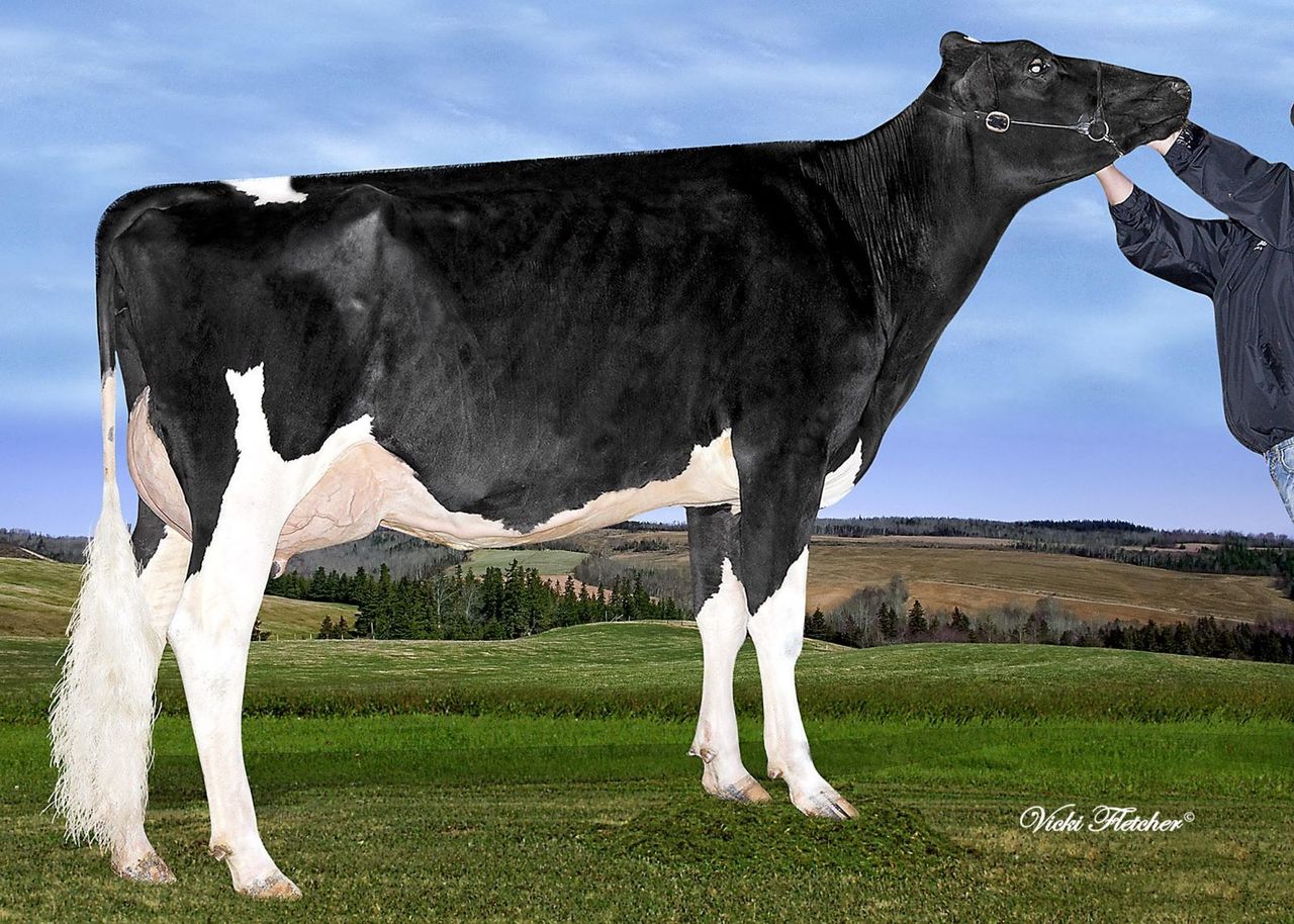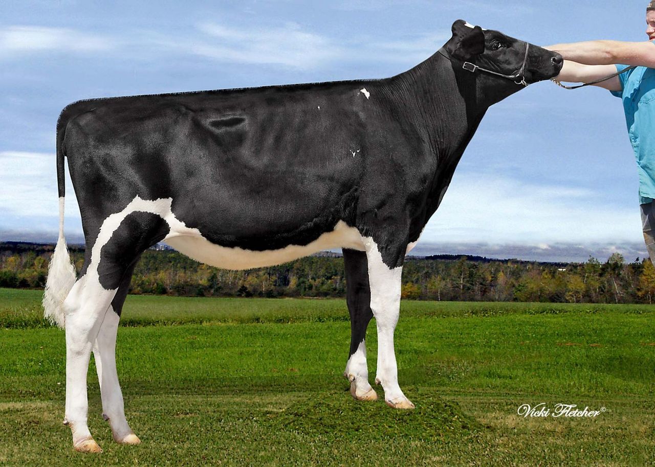 Click further for the picture of Lookout-Pesce Lex Perla, one of the earliest Lexor-daughters in the breed. Perla is from 5 generations VG or Excellent out of the Welcome Penya family and was sold through the World Prestige Sale to GAEC Du Bon Temps in France. Perla belongs with her sky-high GTPI of +2336 in the top 10 Lexor-daughters World Wide and scores +3292 DGV-LPI / +13 Conformation on Canadian base!