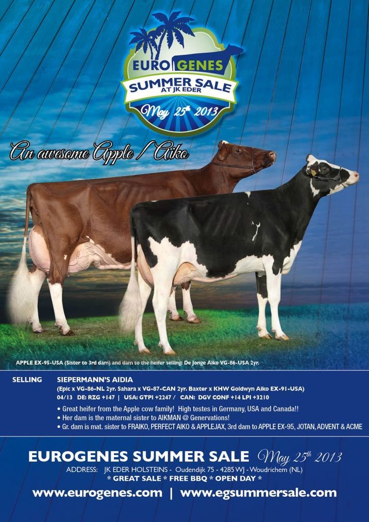 Siepermann Aidia SELLS! A lovely heifer from the family of the R&W Grand Champion of Madison, KWH Regiment Apple Red EX-95-USA! And the family of AIKMAN (mat. brother to her mother), Fraiko, Perfect Aiko, Applejax, Advent, Jotan, Acme and more! This lot has a high test in DE: RZG +147 | USA: GTPI +2247 / CAN: DGV CONF +14 LPI +3210!!