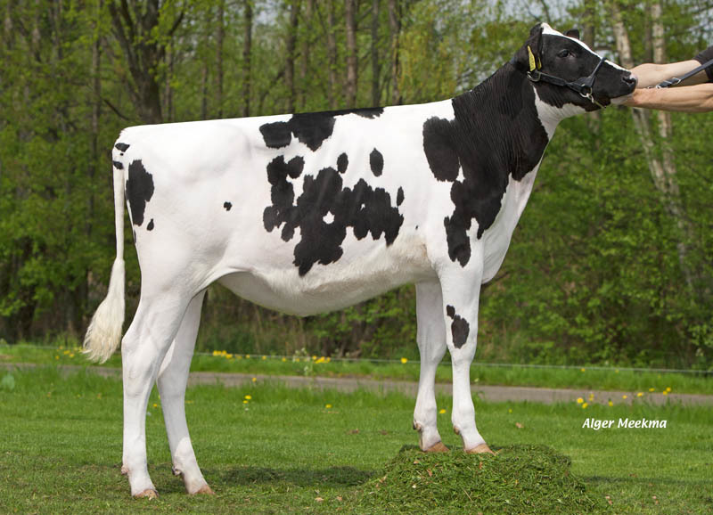 Click furhter for the picture of Lot 38. in the Eurogenes Summer Sale. Vekis Ever *TY, the #1 heifer in Europe for Fat + Protein production, and the #8 GLPI heifer in Europe (DGV Conf. +17 / LPI +3499)! Ever's grand dam is Broeks Bolton Else VG-86-NL 2yr. which sold for € 50.000 as a 2yr. Old, next dam is the full sister of the fantastic SNOWMAN from the Mondial Cow of the Year Broeks MBM Elsa EX-90!