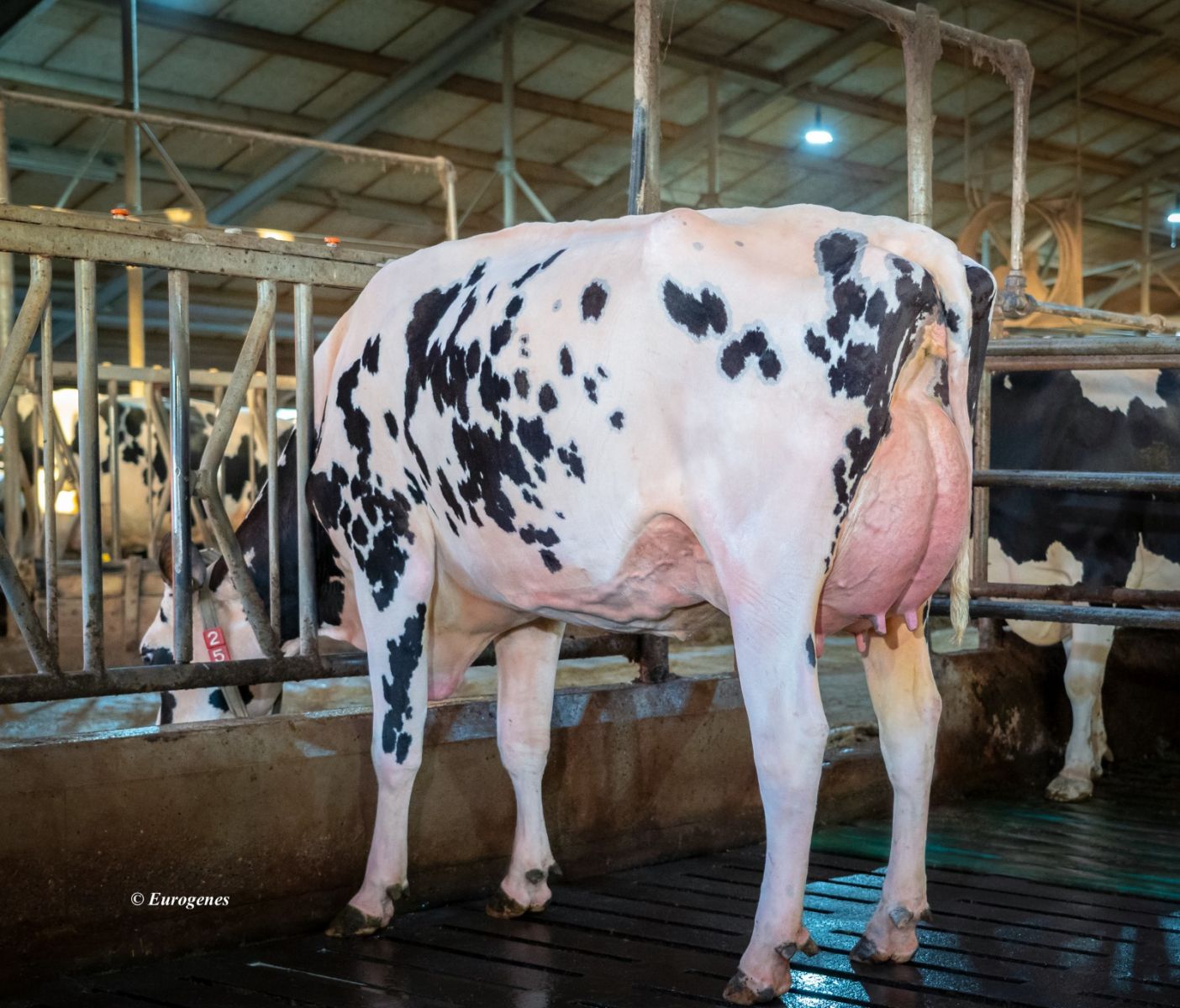 A great result from the Diamond Genetics breeding programm, meet DG Celesta! She is a fancy Parfect daughter in her first lactation, classified with VG-86-NL 2yr. with the maximum score of VG-89 for her Frame! She has a day production of >50kgM and produced now in 141 days already 7.262kgM. She is dam to a polled Hanx P son at +3172 GTPI / +2.69 PTAT and will be soon available through the AI-Total portfolio! Celesta VG-86 2yr. is straight from a Mitchell daughter followed by King Doc daughter Larcrest Celandine EX-90-USA and goes back on the worldfamous broodcow Lacrest Cosmopolitan VG-87-USA. This family delivered many sons to AI, with for example Larcrest Commander, Larcest Cancun, Larcrest Casual and more!