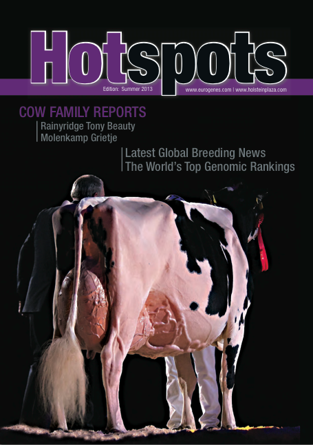 The Hotspots Summer 2013 edition is now online! Soon the hard copy of the 116 pages magazine will arive at over 10.000 doorsteps in over 40 different countries! Click further for the online edition which includes aticles of the American Rainyridge Tony Beauty and the Dutch Molenkamp Grietje's, the World's top genomic rankings, Show Spots, the latest global breeding news, Favorite Superstition daughter contest and more!