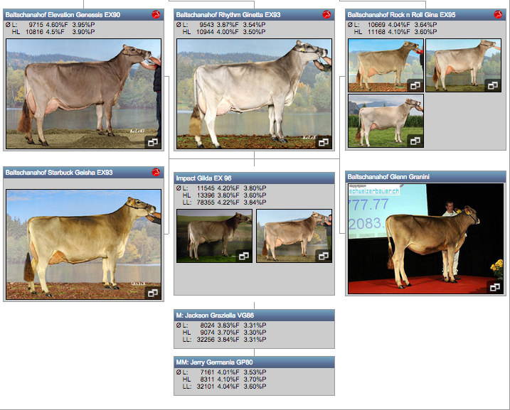 A unique achievement for Impact Gilda EX-96-CH from Baltschahof from the Thomann family in Switzerland! She is one of the highest classified Brown Swiss cows in the World and now also one of the highest lifetime production Brown Swiss cows ever, she recently broke the 125.000 kg of milk level!