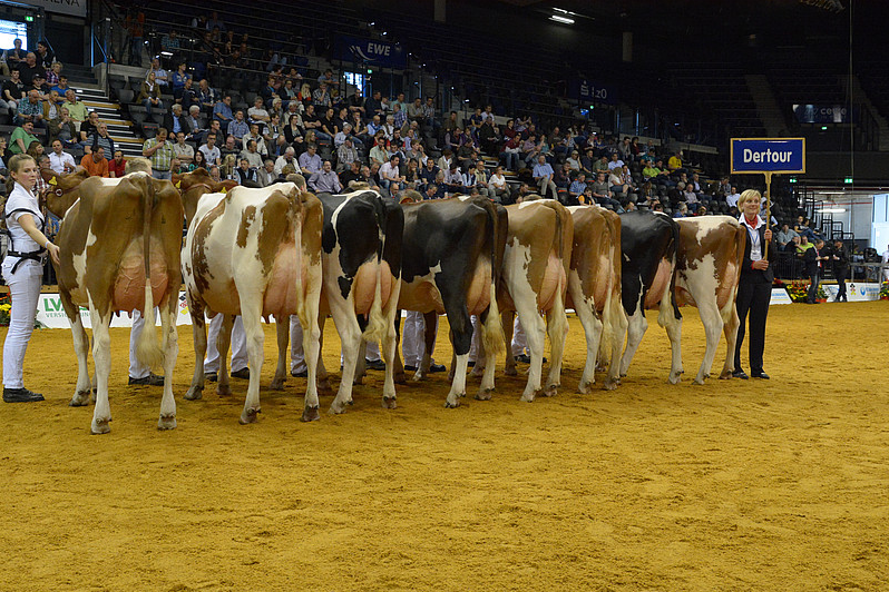 Several progenygroups were shown at the German National Show the DHV Show in Oldenburg last week. Including progenygroups of the bulls bred by Eurogenes members, Dixieland which bred by RZH Holsteins and Dertour Red bred by Beeze Holsteins from the Netherlands. Click further to see pictures of these groups!