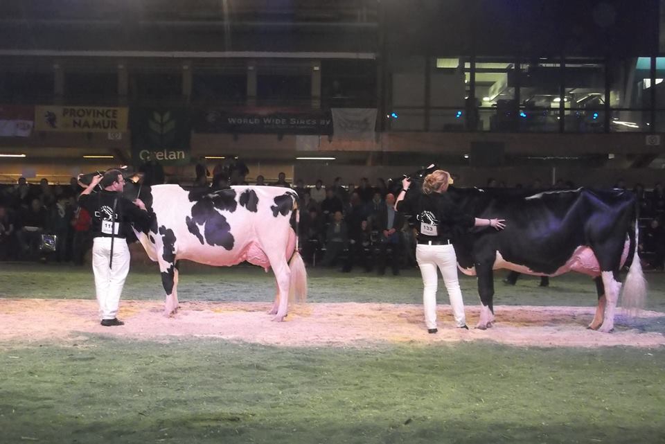 Last Saturday the Night of the Holsteins has been held in Libramont, Belgium, with a large crowd, a great atmosphere and high quality level of beautiful Holstein cows. Bons Holsteins Koba 191 (s. Jasper) from Bons Holsteins, the Netherlands captured the Senior Championship title after she was just 14 days fresh! Later this evening she also won Reserve Grand Champion! Her full sister Bons Holsteins Koba 195 won her class and won HM Intermediate Champion. Bons Holsteins took the 2nd place in the overall ranking of best breeder of the Show.