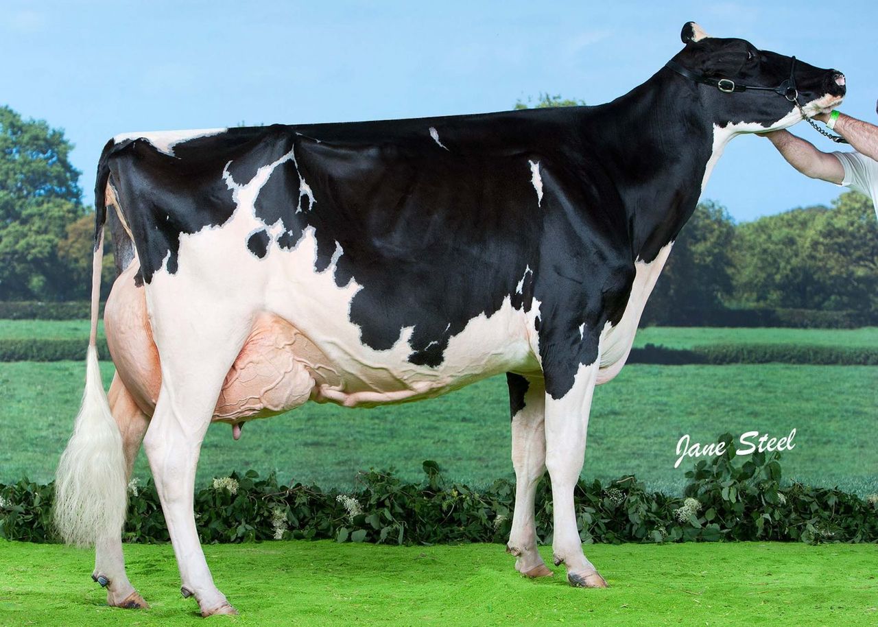 Snow-N Denises Dellia EX-95-USA belongs to the most famous brood cows ever and dam to bull Durham, Dundee, grand dam to Damion and also the cow behind great bulls like Iota, Mac and more! Dellia has over 33 Excellent dtrs by 19 different sires. Her highest European scored dtr is Ketby Dellia Encore EX-94-UK 3E, the full sister to DUNDEE, she is dam to the Res. Grand Champion of the UK National Dairy Event 2013 Richaven Goldwyn Dellia EX-91-UK. One of the greatest cows from the Dellia's right now with embryos available in the Eurogenes Online Embryo Sale in Lot 4!