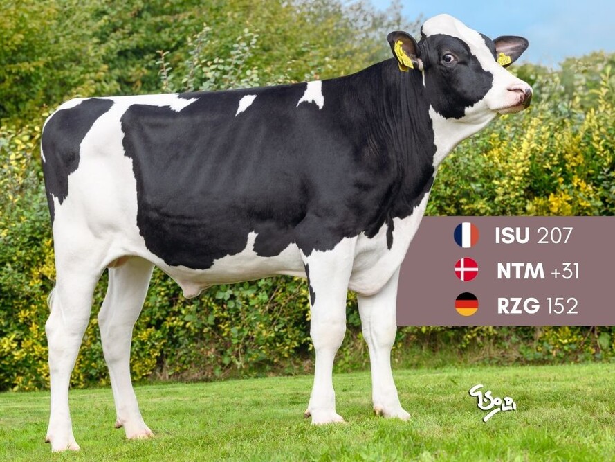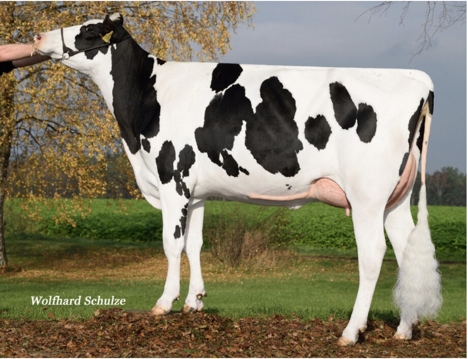 She is a promising Foreman daughter, topseller of the Masterrind Exclusive Sale 2022 and recently pictured and classified, meet Imagine! This Foreman daughter is classified with VG-85-NL 2yr. and is in her 1st lactation projected in 305 days at 10.622kgM with 4.4%F and 3.7%P! She is dam to the +157 RZG / +3224 GTPI / +301 gNVI Real Syn son DG Ike and the +152 RZG / +3244 GTPI / +207 ISU Space son DG Indian. Imagine VG-85 2yr. is from a VG-86-DE Lenovo daughter, followed by Benz daughter Ista VG-88-DE. Ista VG-88 is dam to Ilott P @ Intermizoo and dam to Ronan @ Genes Diffusion. She is from the same family as the 2yr. old Champion Schau der Besten 2017 Seeger's Indiana EX-92-NL and FG Ice, the Res. Intermediate Champion European Show Fribourg 2013!