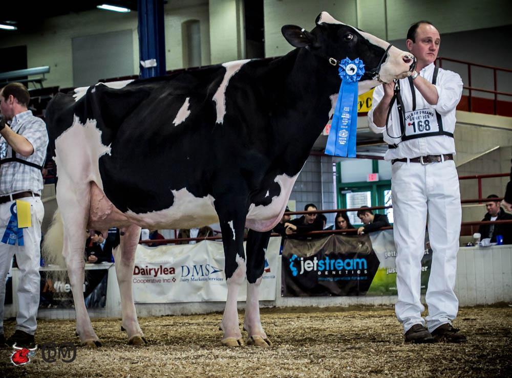 BVK Atwood Arianna VG-89-USA 2yr. Is one of the most famous Atwood dtrs in the breed after winning her class at the World Dairy Expo. Last weekend she did it again and won the 1st place in the Jr. 3-Yr. Old Class at the New York International Spring Holstein Show. Arianna is straight from Kingstead Chief Adeen EX-94-USA and is owned by Butlerview Holsteins, Frank & Diane Borba and Ponderosa Holsteins.