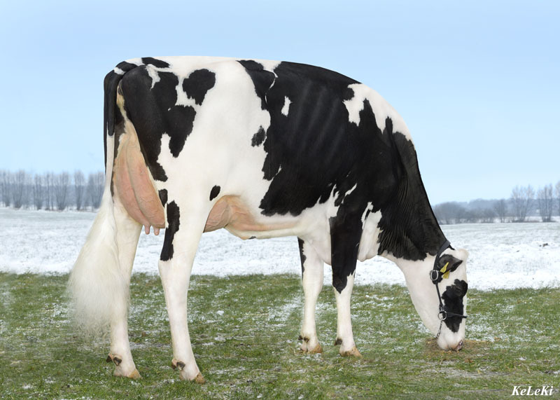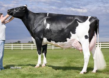 Elion 2 is a Hunter grand dtr of the GLobal Cow of the Year 2011 Broeks MBM Elsa EX-90 (picture), dam to SNOWMAN!