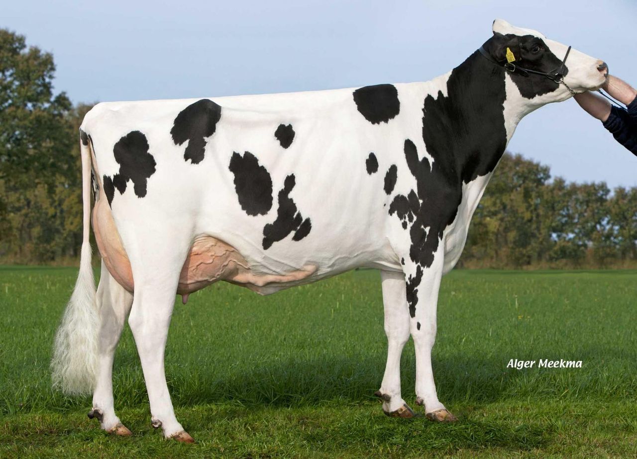 FG Policy owned by Flevo Genetics is fresh again and scored recently VG-88-NL with EX-92 for her magnificent Mammary System! FG Policy is one of the earliest daughter in Europe from the former #1 GTPI bull Planet and is straight from the EX-93 full sister of Windy-Knoll-View Pledge EX-95-USA, Unanimous All-American 5-Yr. Old 2007 and to the proven bull Pronto.
