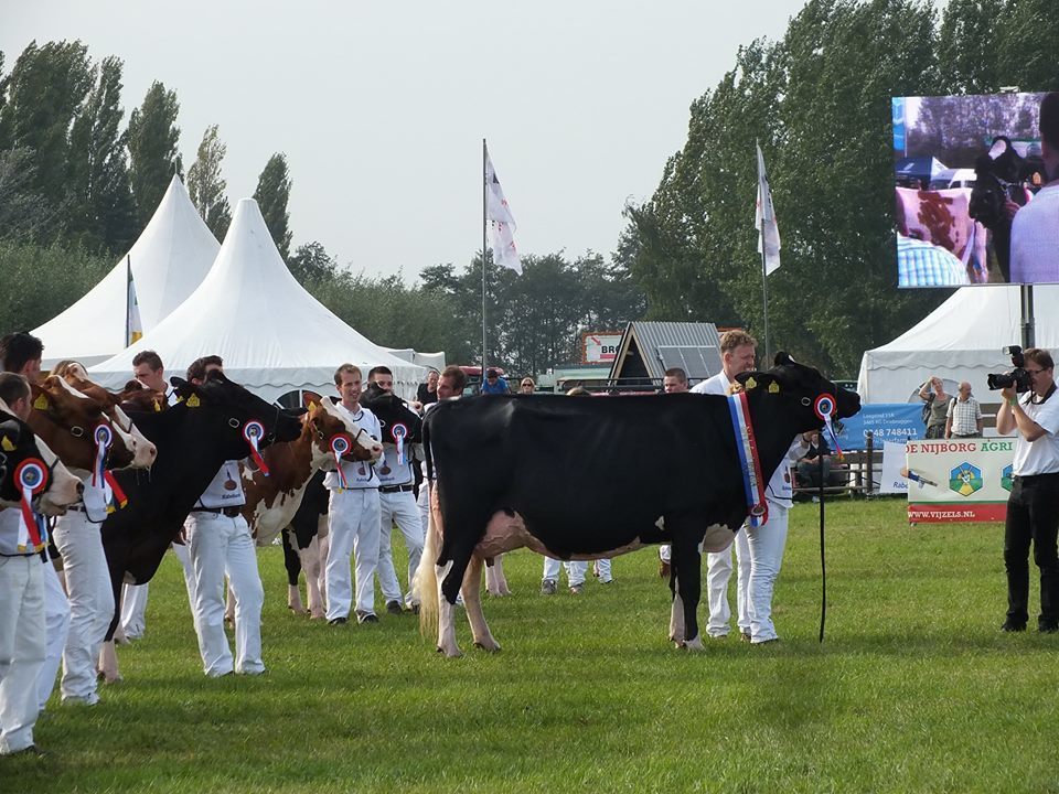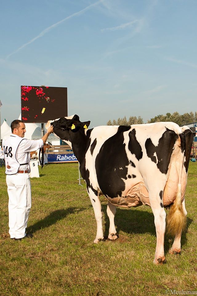 2014 is a great show year for Bons Holsteins which has won so many titles on International, National and Regional shows already this year. The 102nd edition of the County show Hoornaar last Saturday won by the reigning National Champion, Bons-Holsteins Koba 191! Maternal sister Ella 175 won the Res. Int. Champion and Ella 158 (s. Mailing) won the Sr. Championship & Res. Grand Champion B&W. Also in the R&W show Bons won a title, Talent dtr Aaltje 94 won the Senior Class & Grand Champion R&W.