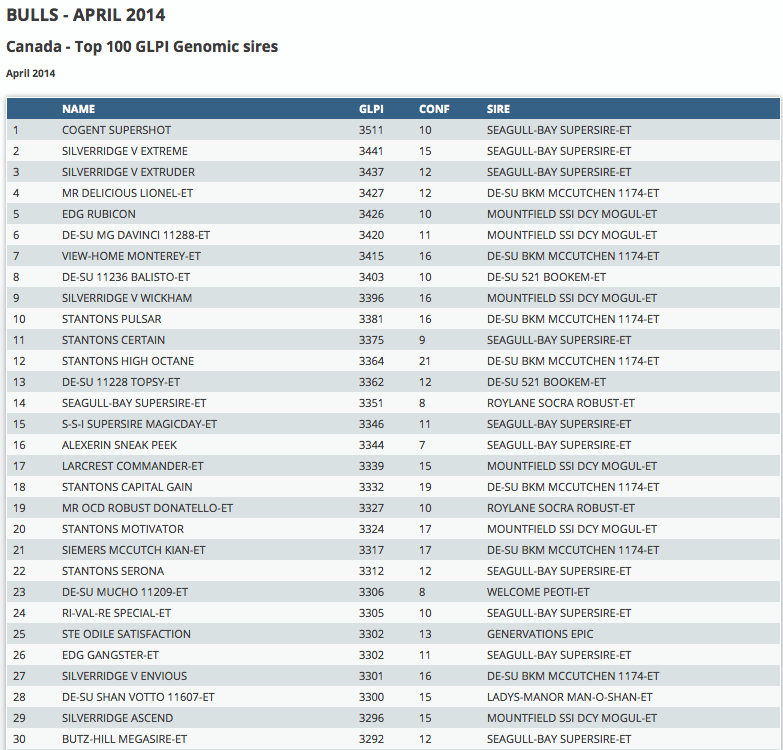 The Top 100 GLPI bull ranking is online at Eurogenes with Cogent Supershot as the #1 GLPI bull with +3511!