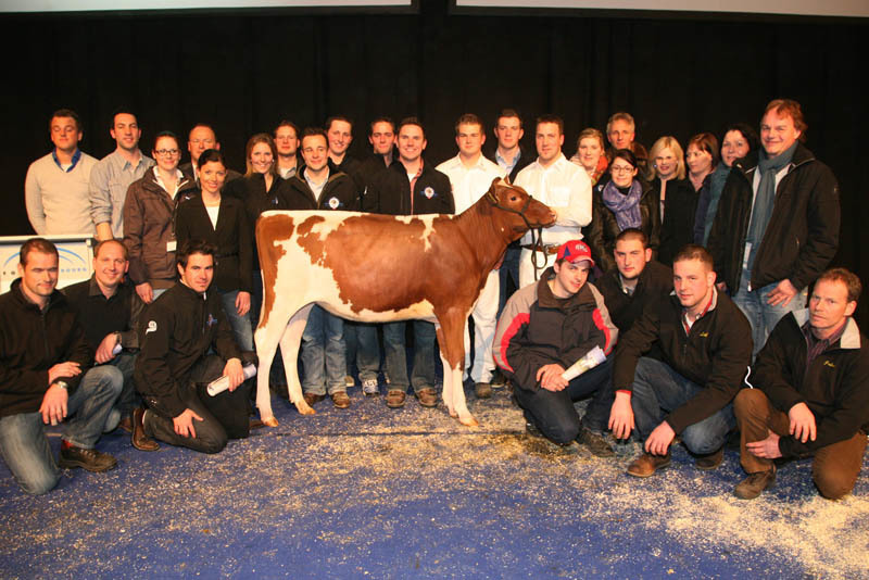 The average of 9’700 CHF (8’083 €) on the 22 lots in the Swiss European Sale means a new record for an auction in Switzerland! The high seller was Morsan Showdown Red, the only female descendant from Blondin Redman Seisme there is in Europe. She sold to a Swiss buyer for 14’700 CHF (12’250 €) for this stylish calf. There were about 2000 spectators that followed the Sale and there have been buyers from 5 different countries (Canada, Netherlands, Belgium, Germany and Switzerland), whereas Swiss buyers are the majority.