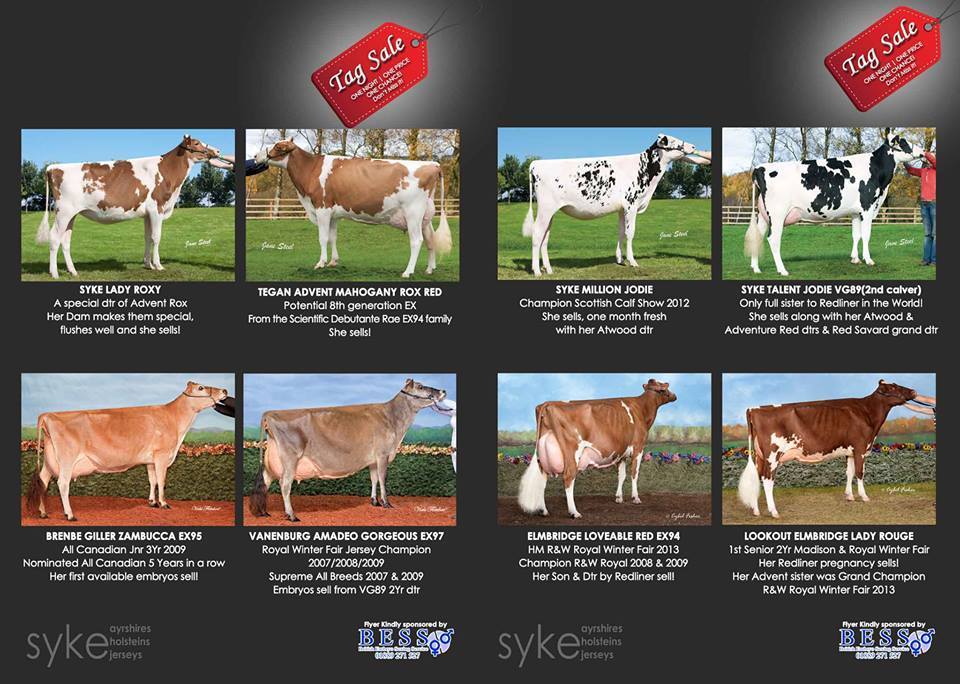 This Saturday the 22nd of Febraury the Syke Tag Sale will take place at the farm of Syke Holsteins in Scotland. Multiple exciting Holstein & Jersey consignments including 5 heifers from Canada sells and many exclusive packages of embryos! Click further for more information.