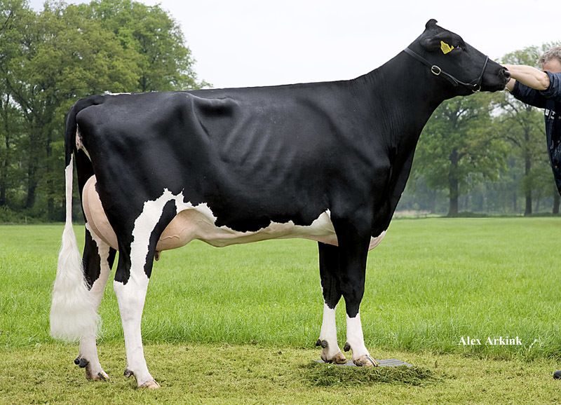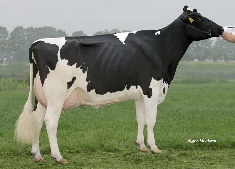 Oelhorst AK Froukje 71 *TY owned by Oelhorst Holsteins has been pictured. This lovely daughter by Van Gogh belongs with +293 gNVI in the top 20 NVI cows in Holland. She is straight from the well-known Froukje 376 (s. Shottle) who is among others dam to Giabo @ RUW, former #1 RZG bull in Germany.