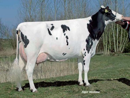 Veenhuizer Zadia 7 EX-91-NL from Veennhuizer Holsteins has calved for the 7th time recently at an age of 12 years old. She started to increase her lifetimeproductions, which is at 108.000 kg milk already. The Zadia's of Veenhuizer Holsteins are going back on the American Kemview Mark Zsa Zsa cow family and delivered many successes for Veenhuizer Holsteins. Veenhuizer Plan Z of Masterrind was the #1 RZG bull for a while in Germany. Click further for more information.