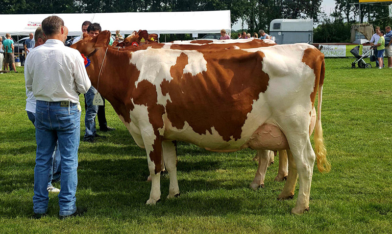 Vekis Phantastic VG-87-NL 2yr. won the Intermediate Championship last Saturday at the Regional’s in Oldebroek, Netherlands. Phantastic was sold last year during the Vekis Spring Sale to the Busweiler family from Nunspeet. She is among others dam to the well-known Numero Uno dtr, Vekis Paige! Veneriete Holsteins had great success with Veneriete Isy Jet (s. Ecoyne Isy) with winning Junior Champion. The Reserve Champion of the youngest calves was O’Chique, the Lotus grand daughter to Decrausaz O’Kalibra! She was sold as an embryo through the Eurogenes Online Embryo Sale to the Netherlands. J&G Holsteins won the Res. 2-Yr. Old & Intermediate Champion R&W with J&G Diana 9 and J&G Lena 128. Click further for more results.