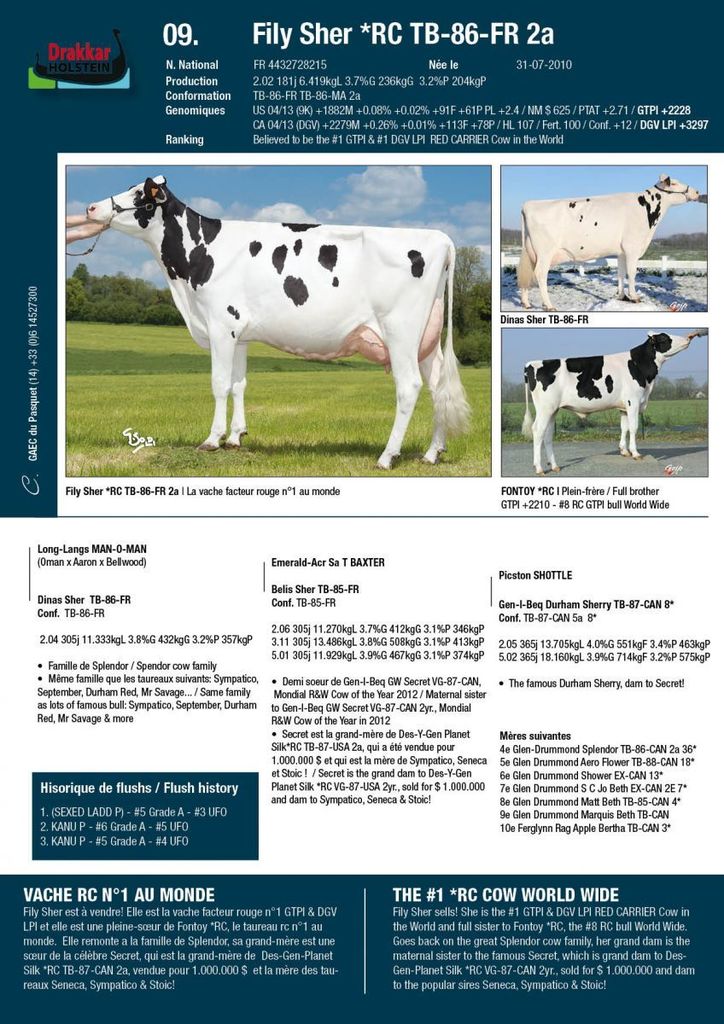 Only 8 days to go until the Vente Drakkar 2013 (www.drakkarholsteins.com) - The August 2013 index run have been very successful for some of the animals selling in the sale, including 2 Top 50 GTPI heifers in Europe, 2 Top 25 GLPI heifers in Europe, the #1 GTPI Polled in Europe, #1 RC Cow and more!
