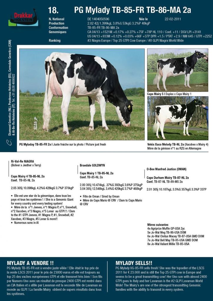 - Dam to the #2 GLPI Lavaman World Wide & #13 GLPI Heifer in Europe