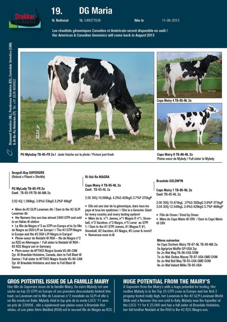 - Outcross Maternal line: Ladd P x Niagra x Stol Joc x Skalsumer Pietje's
