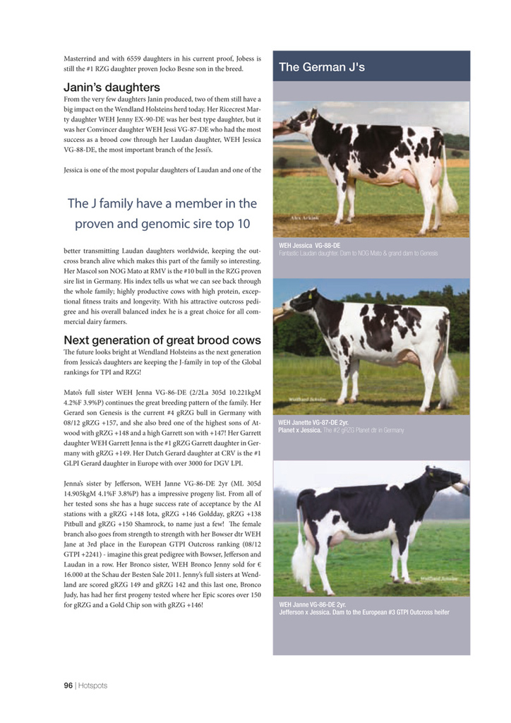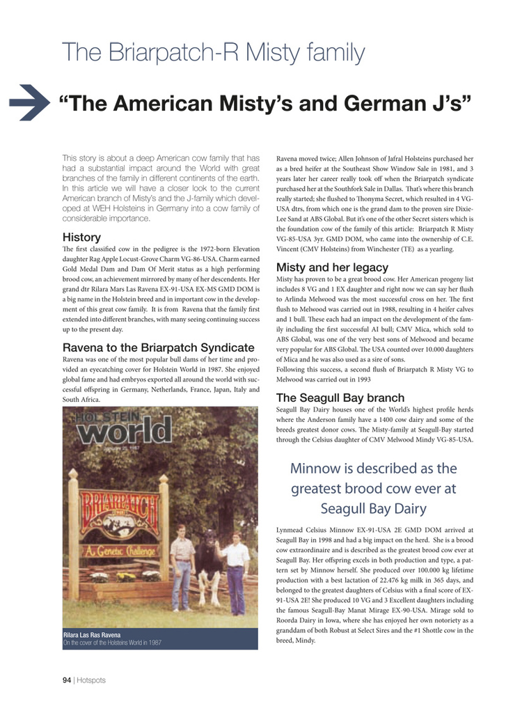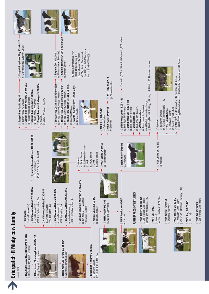 A great performance for the Bronco dtr WEH Jill, owned by the Hintze family from Germany. She is the #1 RZG cow in the German RZG ranking for one year already ! She still has +151 RZG and is also the #4 GLPI Bronco dtr World Wide with +3073 GLPI! Her pedigree goes back to Briarpatch-R Misty also the foundation cow of America’s #1 daughter proven bull Roylane Socra Robust! Click further for an article of the Misty cow family.