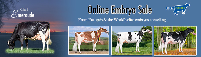 9. Januar 2026 A brand new and first edition of 2026 of the Eurogenes Online Embryo Sale just started. Many interesting embryo packages are added to the sale with for example Female Mountie-Red (+3008 GTPI / +2.53 PTAT) embryos from MS Latenite Sugar Mummy P Red are selling. She is a polled and R&W Latenite P granddaughter to Blondin Redman Seisme EX-97, the 3x Grand Champion World Dairy Expo. Or Female Haveitall Blakely Hinge (+3242 GTPI / +2.80 PTAT) embryos from Sunibelle Dempsey Esprit EX-96-CH her Arrow granddaughter could be yours! Esprit EX-96 has an amazing victory list with winning for example Senior Champion and Grand Champion Swiss Expo 2024. Bid last on Aurora Howland P (+3348 GTPI / +1.56 PTAT) embryos from Broeklander HiPo H Liza, a Harold P daughter at +3143 GTPI and more 'herdbuilding' packages. Continue reading.. Mehr lesen